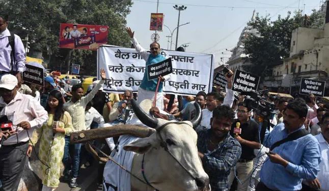 இதேபோல் மாநில அரசுகளும் குறைக்க மத்திய அரசு வலியுறுத்தியது. இதை ஏற்று பல்வேறு மாநிலங்கள் விலையைக் குறைத்துள்ளன. ஆனால் டெல்லி மாநில ஆம் ஆத்மி அரசு விலையைக் குறைக்கவில்லை. இதைக் கண்டித்து மத்திய திட்ட அமலாக்கத்துறை இணை அமைச்சர் விஜய் கோயல் மாட்டு வண்டியில் சென்று, டெல்லியின் சாந்தினி சவுக் பகுதியில் போராட்டத்தில் ஈடுபட்டார். அப்போது உடன் சென்ற பா.ஜ.க. தொண்டர்கள், பெட்ரோல், டீசல் விலையை மாநில அரசு குறைக்க வலியுறுத்தி முழக்கங்களை எழுப்பினர்.
