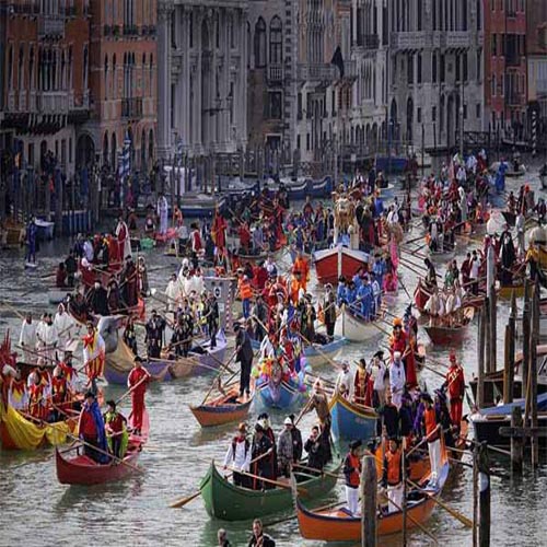 வெனிஸ் குடியரசின் வெற்றியைக் கொண்டாடும் நிகழ்வாக ஆண்டுதோறும் இந்த விழா நடத்தப்படுகிறது. இதையொட்டி மிதவைகளில் விதவிதமான ஆலங்காரங்களில் தோன்றி அசத்திய நபர்கள், சாகச நிகழ்ச்சிகளையும் அரங்கேற்றினர். கயிற்றில் தொங்கியபடி, பெண் ஒருவர் நிகழ்த்திய ஜிம்னாஸ்டிக்ஸ் அனைவரையும் கவர்ந்தது. கயிற்றின் மேல் நடப்பது, சிங்கம், யானை என விலங்குகளின் உருவப் பொம்மைகளுடன் வலம் வருவது என ஆரவாரமாக வெனிஸ் திருவிழா தொடங்கியது.