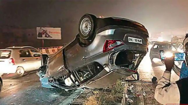 பூர்ணம் சர்தானா என்பவர் தனது குடும்பத்துடன் ஆதர்ஷ் நகர் நோக்கி காரில் சென்று கொண்டிருந்தார். அப்போது சாலை நடுவே உள்ள தடுப்பைத் தாண்டி தறிகெட்டு ஓடிய கார், இவர்கள் சென்ற கார் மீது மோதியது. இந்த விபத்தில் பூர்ணம் சர்தானா உயிரிழந்தார். அவரது 13 வயது மகளுக்கு கண் பார்வை பறிபோனது. தாயின் கருவிழி மகளுக்கு பொருத்தப்படுகிறது. விபத்தை ஏற்படுத்திய உத்தரப்பிரதேசத்தைச் சேர்ந்த ஷிவானி என்ற இளம்பெண் கைது செய்யப்பட்டார். இவர் குடிபோதையில் காரை இயக்கியதே விபத்துக்குக் காரணம் என போலீசார் கூறியுள்ளனர்.