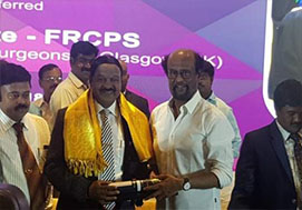 புதிய நீதிக்கட்சி தலைவரும், எம்.ஜி.ஆர் பல்கலைக்கழக வேந்தருமான ஏ.சி.சண்முகத்திற்கு வெளிநாட்டு பல்கலைகழகம் ஒன்று டாக்டர் பட்டம் வழங்கியது. இதனைத்தொடர்ந்து அவருக்கு தனியார் அமைப்பு சார்பாக சென்னையில் பாராட்டு விழா நடந்தது. இதில் நடிகர் ரஜினிகாந்த் சிறப்பு விருந்தினராக கலந்து கொண்டார். அப்போது பேசிய அவர்,”ஏ.சி.சண்முகத்தை பார்க்கும் போது ஆச்சர்யமாக இருக்கும். அவர், பல கல்வி நிறுவனங்களை நடத்தி, அதன் வழியாக, நிறைய பேருக்கு வேலைவாய்ப்பு வழங்கி வருகிறார். எப்போதும் அவர் டென்ஷன் இல்லாமல், புத்துணர்ச்சியோடு இருக்கிறார். அவரிடம் எனக்கு பிடித்தது அவருடைய ஹேர் ஸ்டைல் தான், நானும் அப்படியே வச்சி இருக்கணும்” என்றார்.