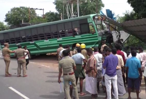 மேலும், பேருந்து நிறுத்தத்தில் பேருந்துக்காக காத்திருந்த 2 பெண்கள் உள்பட 5 பேர் படுகாயமடைந்தனர். அவர்கள், அனைவரும் அருகிலுள்ள தனியார் மருத்துவமனைகளில்