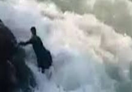 ஸ்வாத் பள்ளத்தாக்கு பகுதியைச் சேர்ந்தவர் ஷேரஸ் கான். கல்லூரியில் படித்து வந்த ஷேரஸ், கடந்த சில தினங்களுக்கு பெருக்கெடுத்து ஓடிக்கொண்டிருந்த ஸ்வாத் நதிக்கரையில் உள்ள பாறையில் நின்று சாகசம் செய்ய விரும்பினார்.