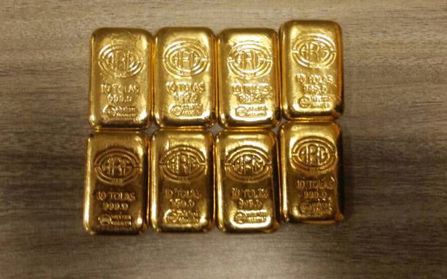 அதன் அடிப்படையில் அந்த விமானத்தில் வந்த பயணிகளின் உடைமைகள் மிக கவனமாக பரிசோதிக்கப்பட்டன. அப்போது, சூடான் நாட்டைச் சேர்ந்த ஹபீஸ் அகமது ஈசாக் மூசா, அவரது மனைவி சஃபியா ஆகியோர் வைத்திருந்த சூட்கேஸ்களும் சோதனையிடப்பட்டன. அவற்றில் இருந்த செல்போன்களை பிரித்துப் பார்த்தபோது, பேட்டரிகள் இருக்க வேண்டிய இடத்தில் 5 தங்கக்கட்டிகள் இருந்தன. மேலும், ஹபீஸ் அகமது ஈசாக் மூசா அணிந்திருந்த பெல்ட்டின் பட்டை தங்கத்தால் செய்யப் பட்டிருந்ததும் கண்டுபிடிக்கப்பட்டது.