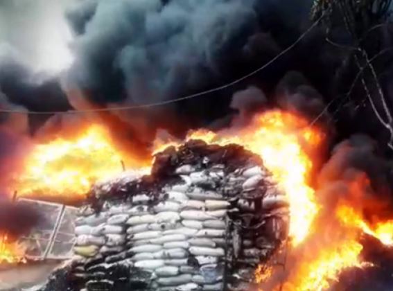 சென்னை மாதவரத்தில் பழைய பிளாஸ்டிக் பொருட்கள் கிடங்கில் தீப்பிடித்து எரிந்த நிலையில் இருபதுக்கு மேற்பட்ட தீயணைப்புத் துறையினர் பல மணி நேரம் போராடித் தீயைக் கட்டுக்குள் கொண்டுவந்தனர்.