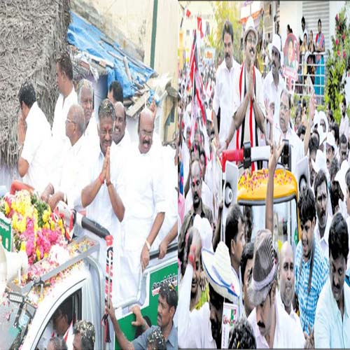 சென்னை ஆர்.கே.நகர் இடைத்தேர்தலில் பரப்புரை இன்று மாலையுடன் நிறைவடைய உள்ள நிலையில் அரசியல் கட்சியினர் அங்கு தீவிர பிரச்சாரத்தில் ஈடுபட்டனர்.