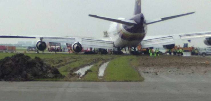 தாய்லாந்தில் மழை காரணமாக ஓடுதளத்தில் இருந்து விலகிச் சென்ற விமானம் விபத்தில் இருந்து தப்பியது. பாங்காக்கில் உள்ள ஸ்வர்ணபூமி விமானநிலையத்தில், தாய் நிறுவனத்திற்கு சொந்தமான போயிங் 747 ரக விமானம் தரையிறங்க ஆயத்தமானது.