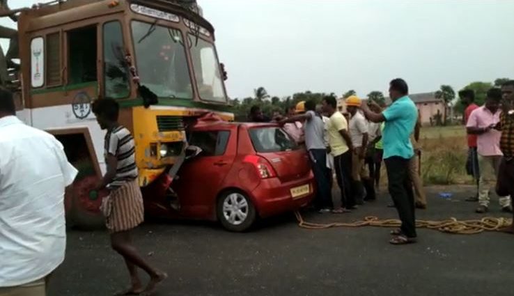 மோதிய வேகத்தில் கார் லாரிக்கு அடியில் சென்று நொறுங்கியதில் காரில் இருந்த அனைவரும் உடல் நசுங்கி உயிரிழந்தனர். லாரிக்கு அடியில் இருந்து காரை மீட்ட போலீசார், அப்பளம் போல் நொறுங்கிச் சிதைந்த காரின் பாகங்களை கடப்பாறை உள்ளிட்ட கருவிகளைக் கொண்டு அகற்றி உடல்களை மீட்டனர். விபத்து குறித்து ஆலங்குளம் போலிசார் வழக்கு பதிவு செய்து விபத்துக்கான காரணம் குறித்து விசாரணை மேற்கொண்டு வருகின்றனர்.