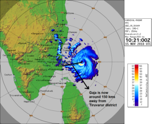 வேதாரண்யத்தை புயல் கரையைக் கடக்கும் போது 100-120 கிமீ வேகத்தில் வேகமாக காற்று வீசும். நாகை மற்றும் வேதாரண்யம் இடையே புயல் கரையைக் கடக்கும். கஜா புயல் தற்போது தமிழக கடல் எல்லையில் இருந்து 150-175 கிமீ தொலைவில் உள்ளது. 25-30 கிமீ வேகத்தில் தமிழகத்தை நோக்கி வந்து கொண்டிருக்கிறது. கரையை எட்டுவதற்கு இன்னும் 6 மணி நேரம் ஆகும் என்று குறிப்பிட்டுள்ளார்.