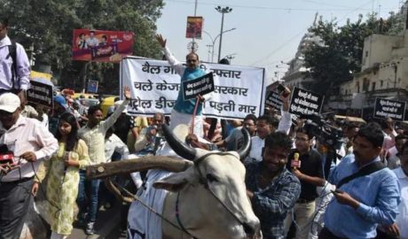 பெட்ரோல், டீசல் விலையை டெல்லி மாநில அரசு குறைக்க வலியுறுத்தி மத்திய அமைச்சர் விஜய் கோயல், மாட்டு வண்டியில் சென்று போராட்டம் 2018-10-07